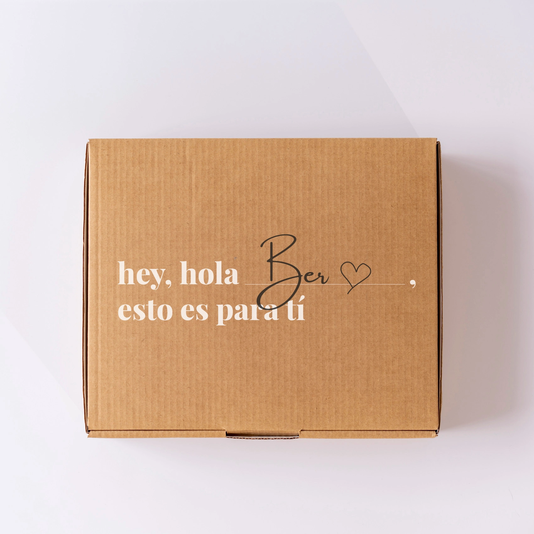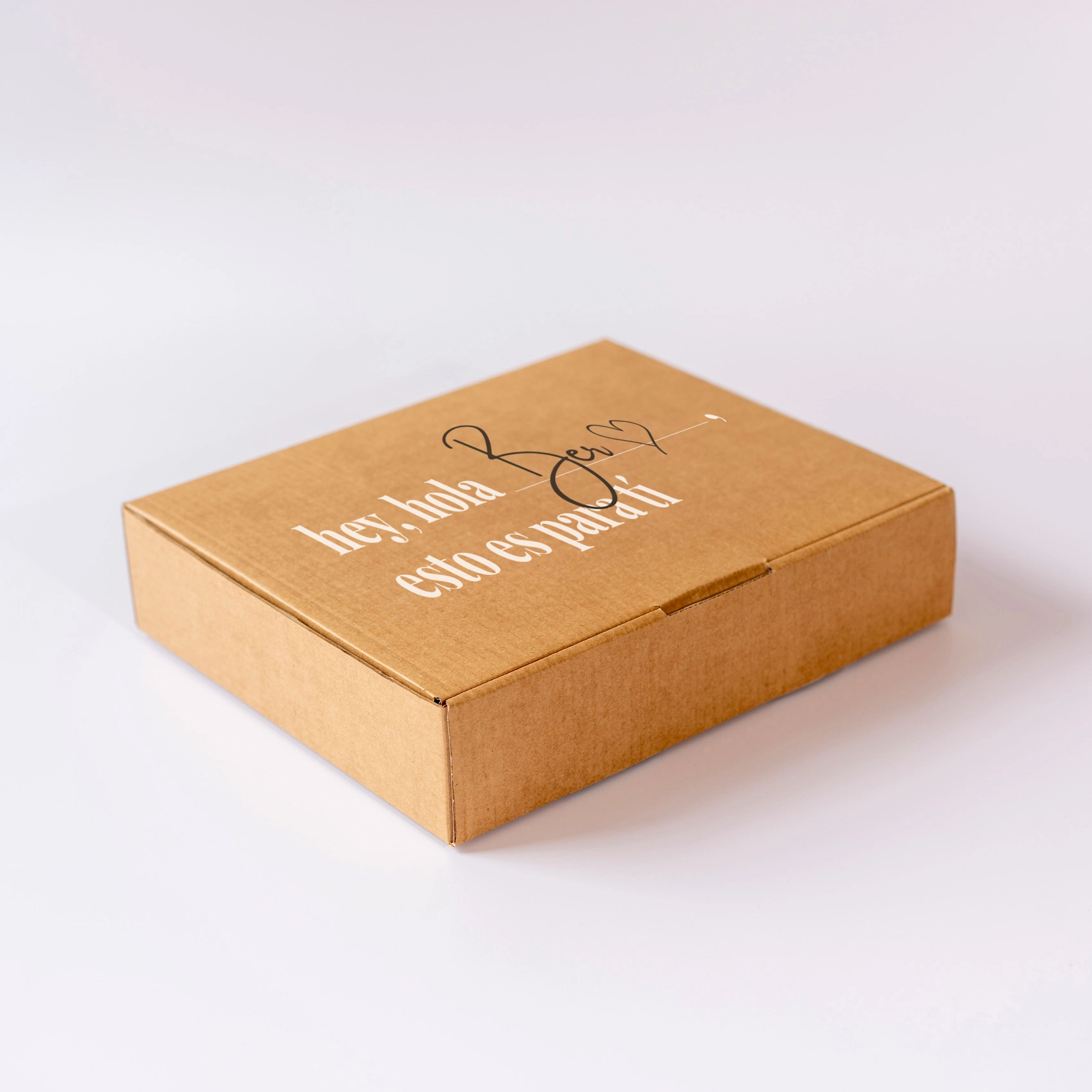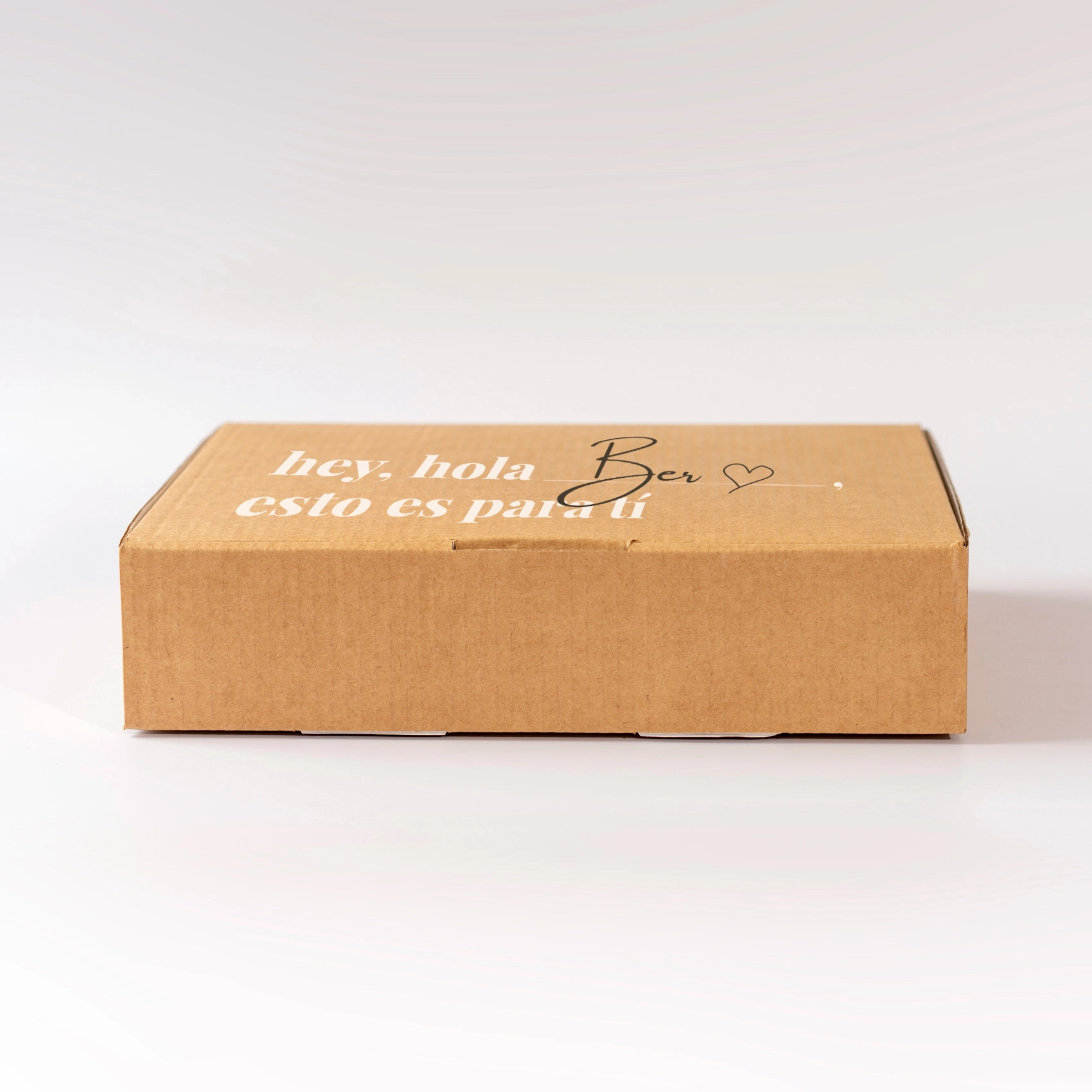 Su acabado kraft por fuera y blanco por dentro resalta el contenido con sobriedad y estilo. Y su aplicación serigráfica le da ese toque de branding justo, sin exagerar.