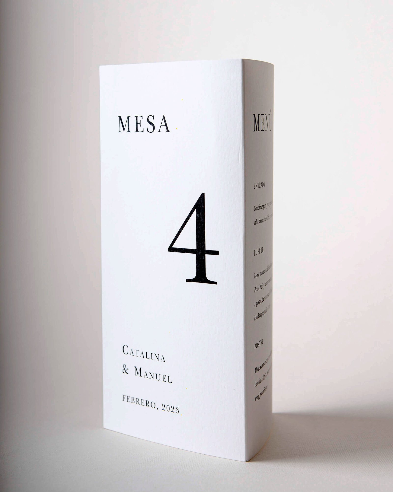 El menú Totem Serenidad es un detalle elegante que elevará la estética de tu mesa. Forman parte de la colección de invitaciones de boda Serenidad.