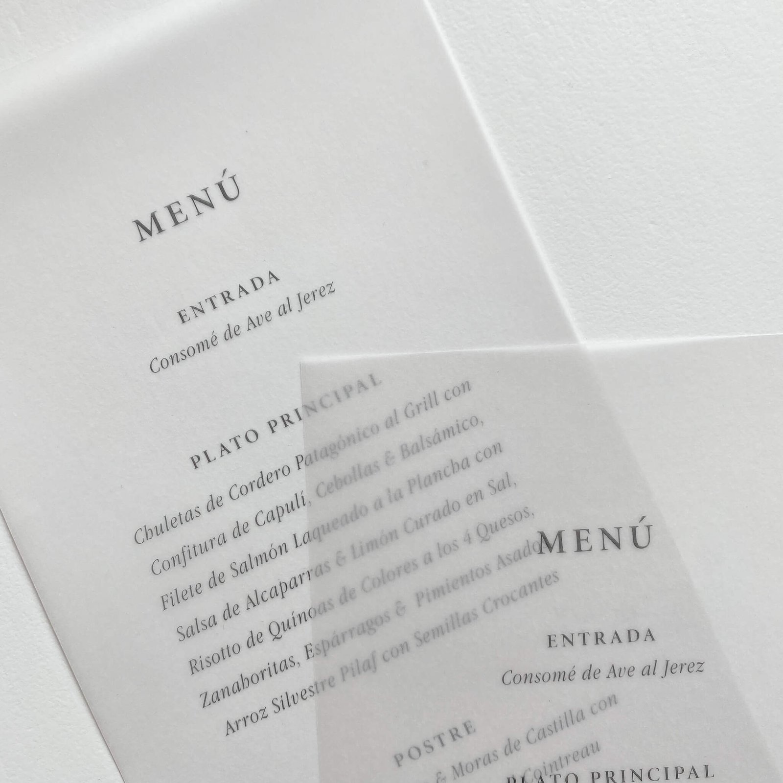 Los menús Nostalgia Gold son un detalle delicado y elegante que elevará la estética de tu mesa. La propuesta está realizada en dos piezas, el menú en papel pergamino acompañado de tag personalizado para utilizarlo como place card o con un mensaje de agradecimiento.